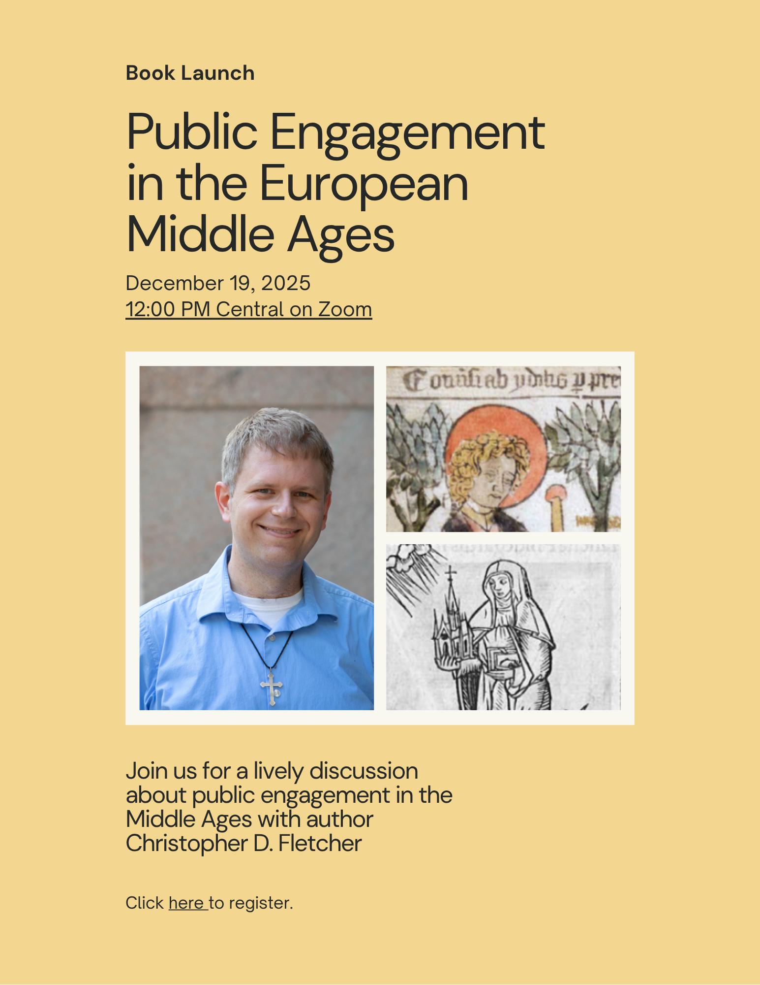 Public Engagement in the European Middle Ages: Medieval Solutions to a Modern Crisis (ARC Humanities Press, 2025) is a manual that uses the medieval past to teach modern scholars how to succeed in public engagement. Combining a careful study of public engagement in Europe between 1000 and 1500 with the author’s experiences working at the Newberry Library, this book shows medievalists how to use mindsets, approaches, and practices from the Middle Ages to build productive connections with diverse publics beyond academia. To do so, it describes the systemic roadblocks preventing effective public engagement in the academy; offers four medieval solutions to those issues from the work of prominent intellectuals and anonymous laypeople from medieval Europe; and suggests how scholars can incorporate those solutions into their professional development. In so doing, this book will help present and future generations of professional medievalists to make their expertise engaging, relevant, and valuable for contemporary audiences of all kinds.